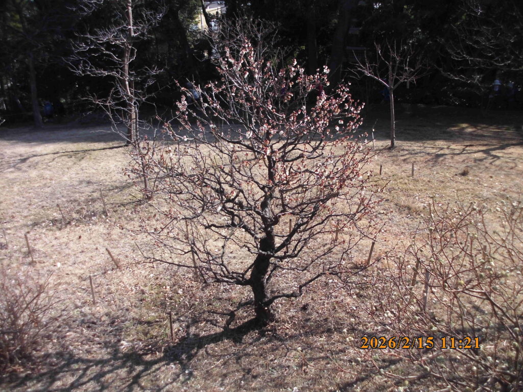 2026年、冬の庭園の様相:丘の上の梅の木満開!花木園の早咲きの梅の木の花の終わりに続いて開花!湧き水の量は極小継続: その4BY都立殿ヶ谷戸庭園
