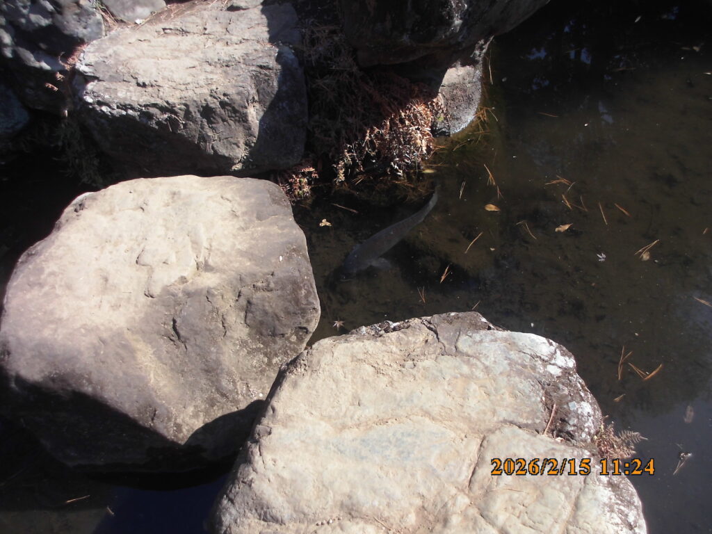 小池の鯉は、当日は三匹の姿を見つけることが出来ました。